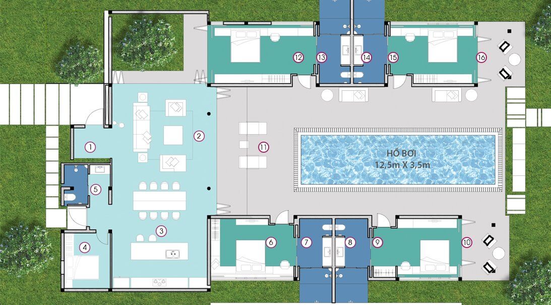 • Hồ bơi lớn khoảng 2.000 m²