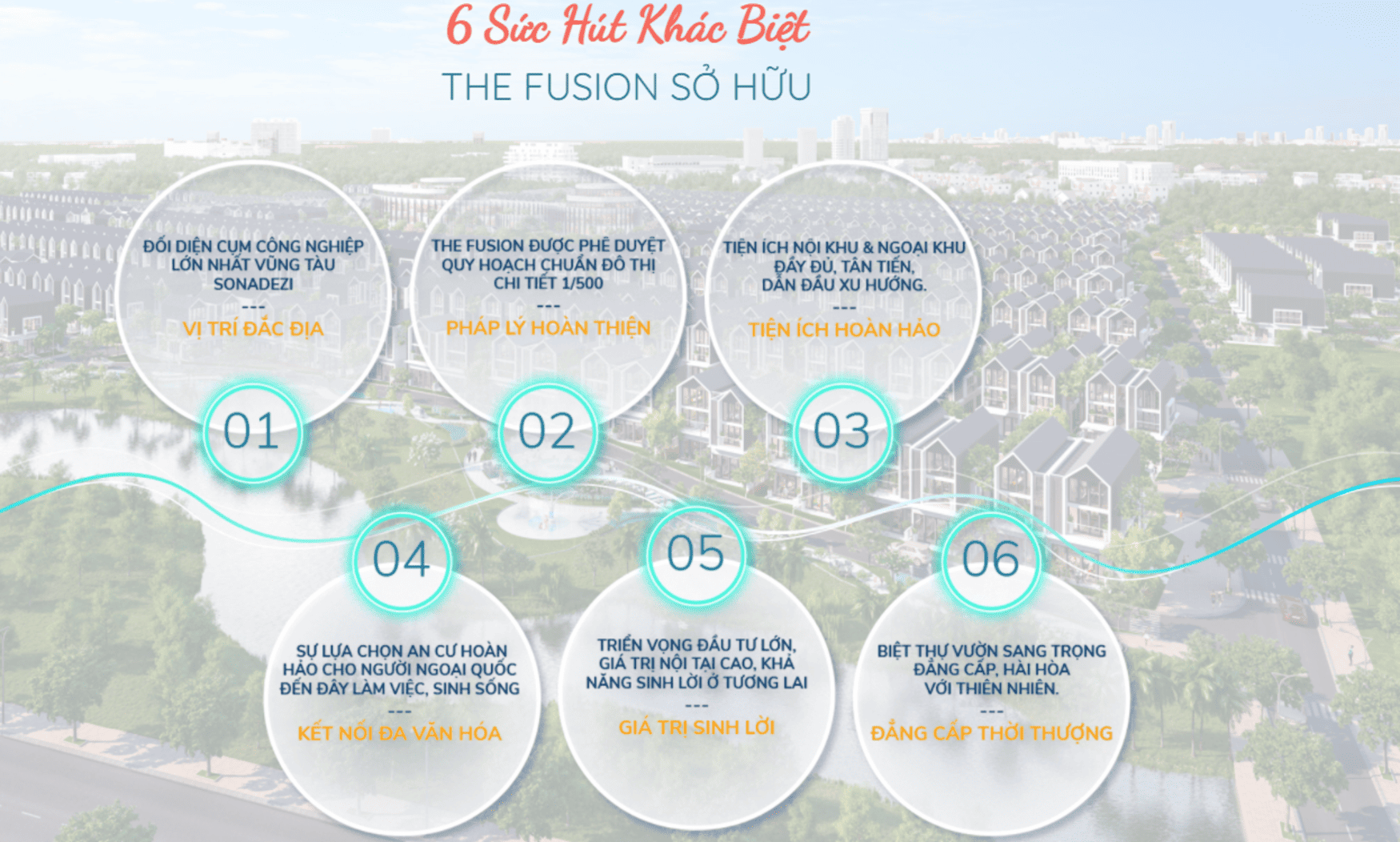Đại đô thị The Fusion không chỉ là một tài sản mang tính biểu tượng của sự thành đạt, mà còn là một di sản truyền đời vô giá cho các thế hệ tương lai. Nơi đây quy tụ 6 sức hút khác biệt: Vị trí đắc địa, Pháp lý hoàn thiện, Tiện ích hoàn hảo, Kết nối đa văn hóa, Giá trị sinh lời cao và Đẳng cấp thời thượng. "Nhất hòa vạn sự hưng" – một cuộc sống bình an, phồn thịnh đang chờ đón những chủ nhân tinh hoa tại The Fusion.